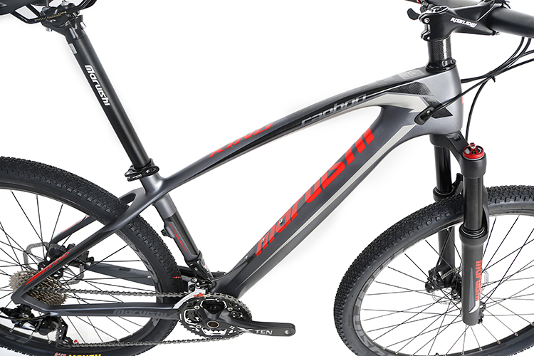 Khung xe: là một bộ phận quan trọng cấu thành nên chiếc xe, nó quyết định đến độ chắc chắn của chiếc xe, tính thẩm mỹ, tư thế của người đạp xe. Với kiểu dáng thiết kế phù hợp sẽ tạo cho người đạp xe một tư thế thoải mái không bị gò bó, không gây cảm giác mệt mỏi, khung trên của xe vát về đằng sau với cọc yên thấp giúp cho người sử dụng có chiều cao từ 160cm – 190cm có thể ngồi thoải mái và lái xe dễ dàng. Với phần khung xe Hãng Maruishi sẽ sử dụng một vật liệu yêu thích nhất – vật liệu tuyệt hảo có rất nhiều ưu điểm trong việc chế tạo khung xe. Không phải nhôm, không phải Thép cũng không phải titan. Mà là Carbon 18K , được phủ một lớp sơn bóng hoặc phủ sần, được kết hợp với bộ tem kéo vuốt dài từ trước ra đằng sau, được tôn thêm nổi bật với tên Hãng Maruishi, mang lại cho chiếc xe sự nổi bật, mạnh mẽ, thể thao, năng động.