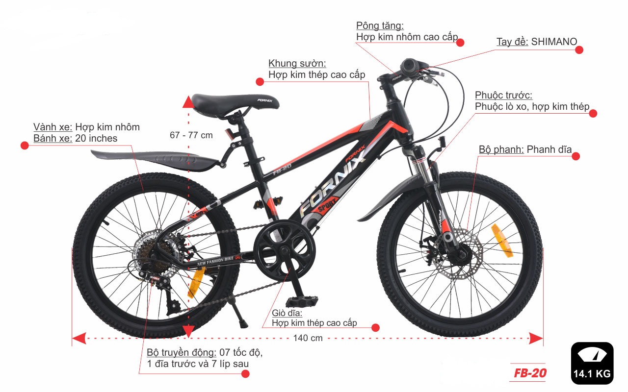 Tay đề: FORNIX FB-20 được trang bị tay đề SHIMANO SL-RS25 với thiết kế với các thông số kĩ thuật cao cấp như bộ đòn bẩy Revo SHIMANO SL-RS25 cùng với biến tốc SIS 3x7 tốc độ mang đến cho người dùng những trải nghiệm tốc độ dễ dàng với độ an toàn cao.