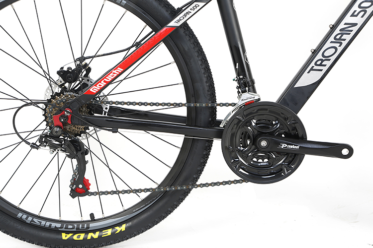 Hệ thống biến tốc ( bộ đề ): bộ đề là một bộ phận quan trọng trong chiếc xe. Để tăng sức mạnh cho chiếc xe, hãng Maruishi đã trang bị cho chiếc xe bộ đề Tuorney của hãng Shimano với 24 cấp tốc độ. Shimano là hãng sản xuất nổi tiếng những bộ đề số chất lượng tốt góp phần tạo nên tên tuổi cho những thương hiệu xe đạp nổi tiếng trên Thế giới. Để là một công cụ hỗ trợ đắc lực cho người sử dụng hãng Maruishi đã trang bị cho xe một hệ thống biến tốc với 3 đĩa trước và 7 líp sau hợp thành 24 tốc độ đạp tùy biến hỗ trợ, trợ lực cho người sử dụng bức tốc qua những quãng đường dài, trợ lực khi qua những con dốc cao nhẹ nhàng. Với bộ đề 24 tốc độ của hãng Maruishi trang bị cho chiếc xe, sẽ taọ cho bạn những trải nghiệm thú vị khi sở hữu chiếc Xe đạp địa hình cao cấp 500 này.