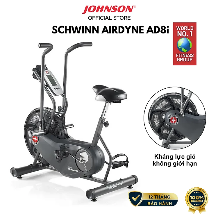 Xe Đạp Tập Airbike Schwinn Airdyne AD8i Công Nghệ Kháng Lực Gió, Tải Trọng 160kg