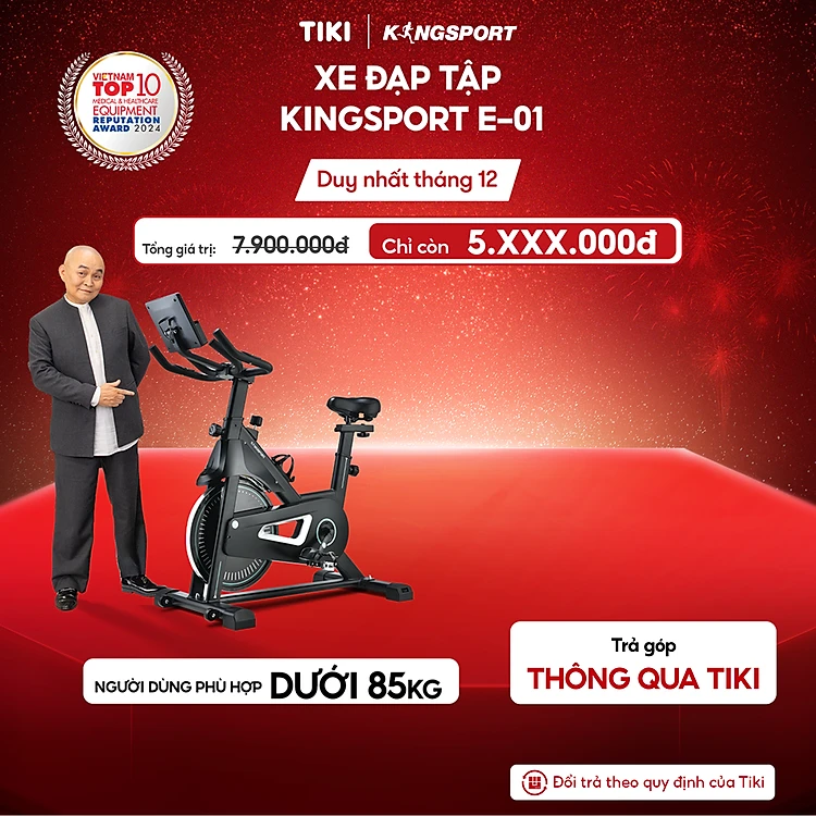 Xe đạp tập KINGSPORT Active E-01 thiết kế năng động, bánh đà 6kg, kháng lực từ tính êm ái, tích hợp đồng hồ đo lường chỉ số, cân nặng phù hợp từ 80-85kg