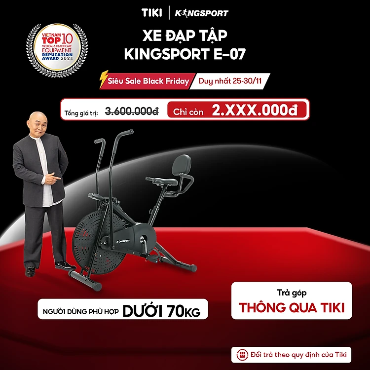 Xe đạp tập KINGSPORT Classic E-07, ghế tựa phù hợp người lớn tuổi, tích hợp đồng hồ đo lường chỉ số