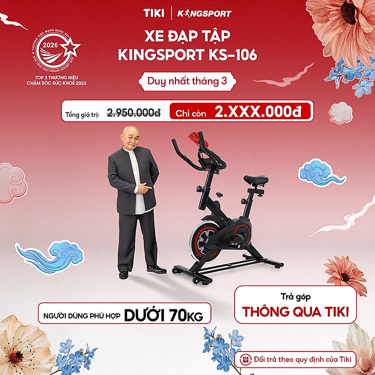 [Miễn phí lắp đặt] Xe đạp tập KINGSPORT KS-106 khung, khung sườn chắc chắn, tích hợp đồng hồ đo lường chỉ số, cân nặng phù hợp từ dưới 70kg