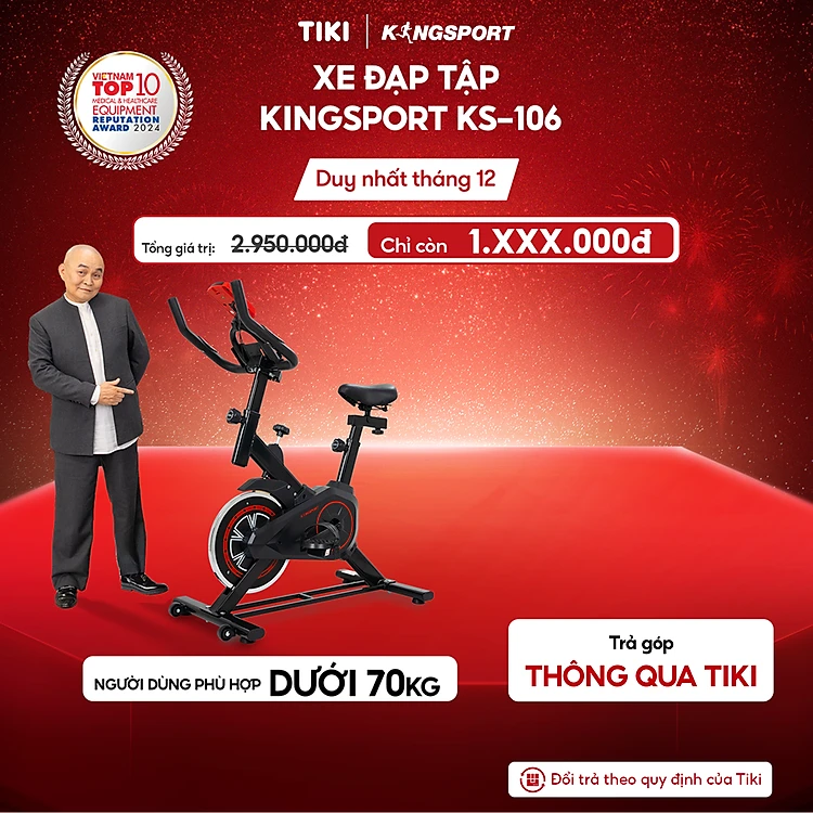 Xe đạp tập KINGSPORT KS-106 khung, khung sườn chắc chắn, tích hợp đồng hồ đo lường chỉ số, cân nặng phù hợp từ dưới 70kg