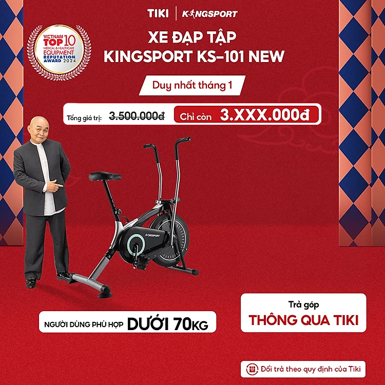 Miễn phí lắp đặt | Xe đạp tập KINGSPORT KS-101 tập luyện toàn thân, tích hợp đồng hồ đo lường chỉ số, cân nặng phù hợp từ dưới 75kg