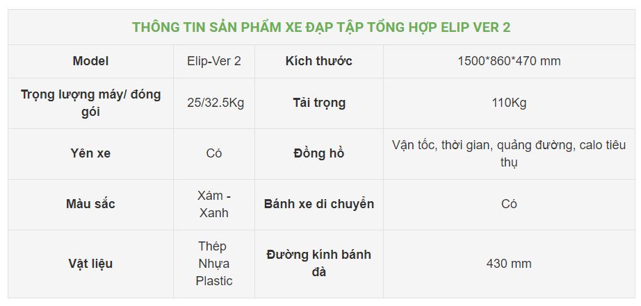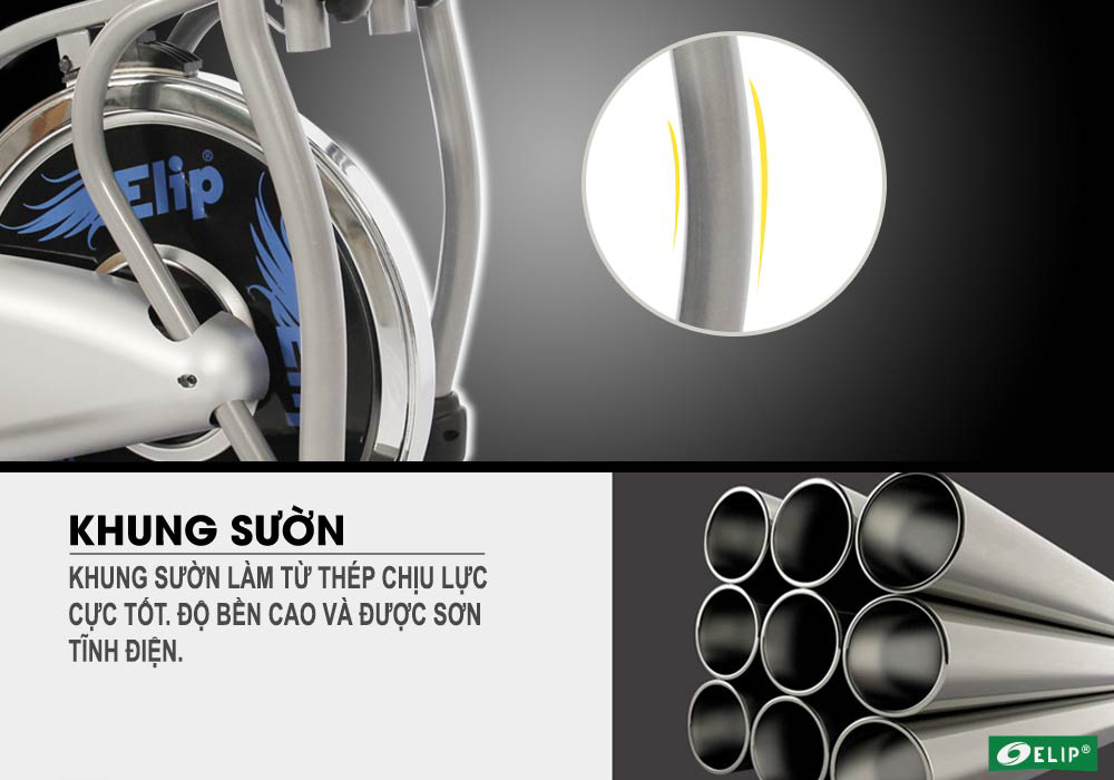 Elip Ver 2 được chế tạo từ thép chịu lực cao được sơn tĩnh điện chống rỉ độ bền cao. Cấu tạo bánh đà từ hợp kim, khả năng cản lực tốt mang đến nhiều bài tập đạp xe hiệu quả cao.
