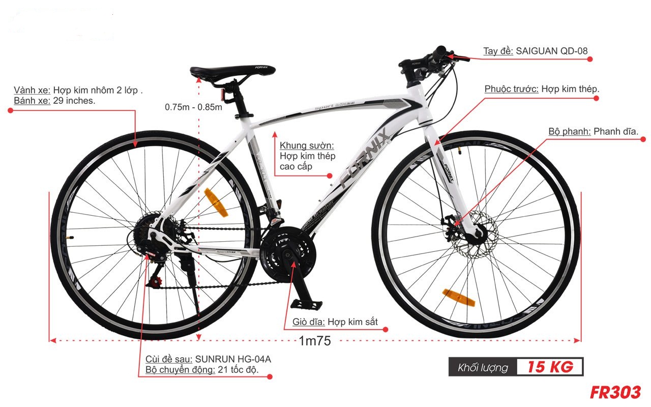 Xe đạp thể thao Fornix FR303 là dòng xe đạp đua kiểu dáng mạnh mẽ và thể thao sẽ cùng bạn chinh phục mọi chặng đường.