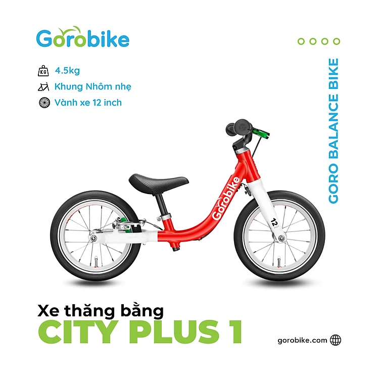 Xe Thăng Bằng City Plus 1 Gorobike - Bánh 12 inch (cho trẻ 2-3 Tuổi/ Cao 80-105Cm)