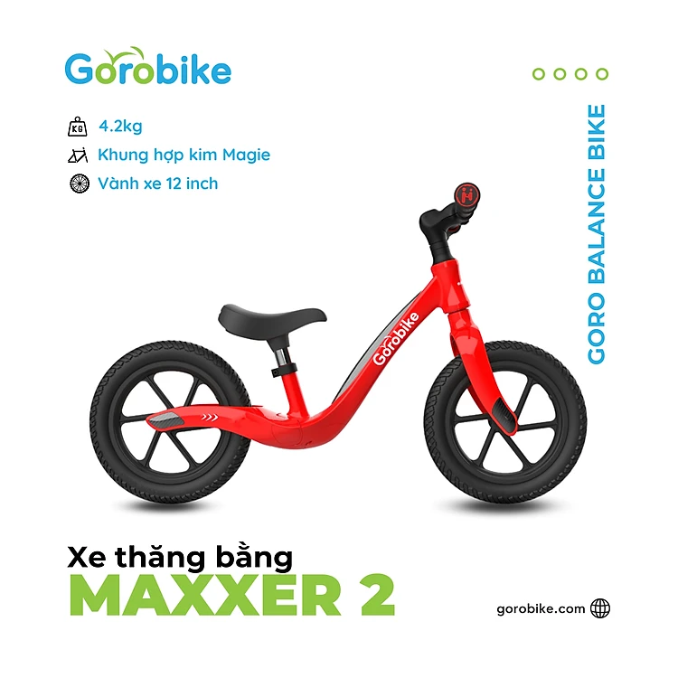 Xe Thăng Bằng Maxxer 2 Gorobike - Bánh 12 inch (cho trẻ 2-3 Tuổi/ Cao 80-105Cm)