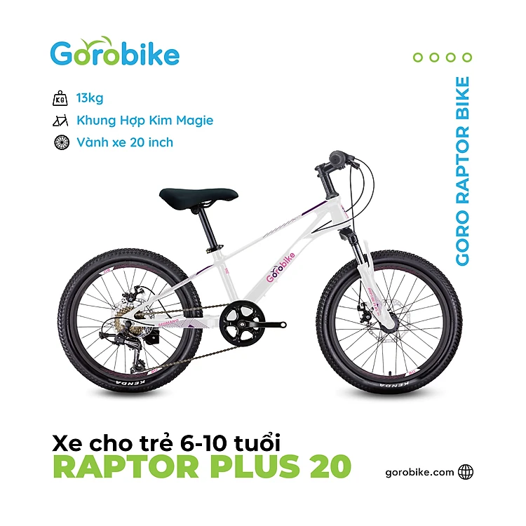Xe Đạp Thể Thao Trẻ Em Raptor Plus 20 - Bánh 20 inch (cho trẻ 6-10 Tuổi/ Cao 120-140Cm)