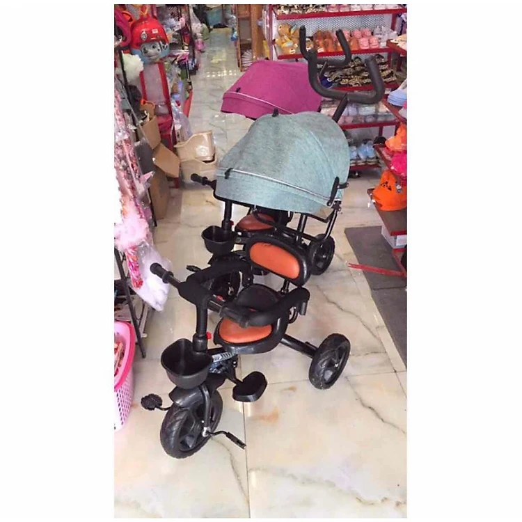 XE ĐẨY 3 BÁNH CÓ MÁI CHE GHẾ BỌC DA CHO BÉ Xe có 3 màu: xanh, hồng, đỏ. Thích hợp sử dụng cho các bé từ 6 tháng - 4 tuổi. Kích thước xe: 82x52x105cm. Độ tuổi phù hợp: 6 tháng - 6 tuổi. Chất liệu: khung sắt chịu lực cao cấp được phủ một lớp sơn chống gỉ đảm bảo giữ được độ bền và màu sắc tươi mới của xe. Trọng lượng: 9kg. Tải trọng: 35kg. Thông tin chị tiết: đây là sản phẩm đạt chất lượng về độ an toàn cho bé, có mái che nắng che mưa tiện lợi cho cha mẹ, ông bà đẩy bé đi chơi, đi chợ với giỏ đựng phía dưới gần 2 bánh sau. Ghế tựa cho bé em ái, thoải mái có thể điều chỉnh được vị trí, đảm bảo an toàn phí trước cho bé. Khi bé hơn 2 tuổi có thể tháo rời các bộ phận không cần thiết như: cán đẩy, mái che, chân nhẵm phụ giữa xe và quây xe thì xe sẽ chở thành 1 chiếc xe 3 bánh đạp cho bé tập đạp xe nhé .