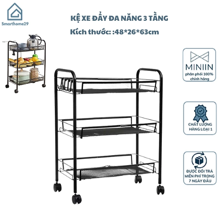 Xe Đẩy Đa Năng 3 Tầng – Kệ Nhà Bếp - Kệ Spa Mặt Lưới Nhập Khẩu Cao Cấp - Hàng Chính Hãng MINIIN