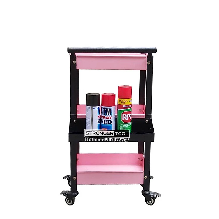 XE ĐẨY ĐA NĂNG 3 TẦNG MÀU HỒNG CÓ KHAY PHỤ
