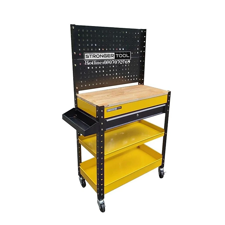 XE ĐẨY DỤNG CỤ 1 NGĂN KÉO CÓ MẶT BÀN GỖ VÀ TẤM TREO STRONGER TOOL