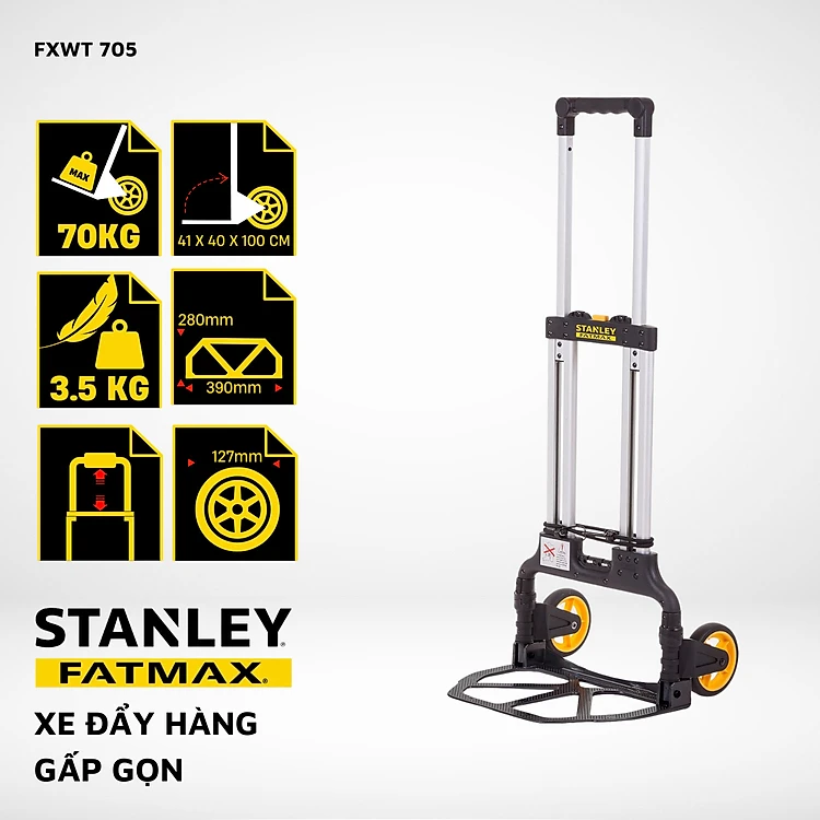Xe đẩy hàng 2 bánh gấp gọn khung nhôm tải trọng 70kgs STANLEY FATMAX- USA FXWT-705