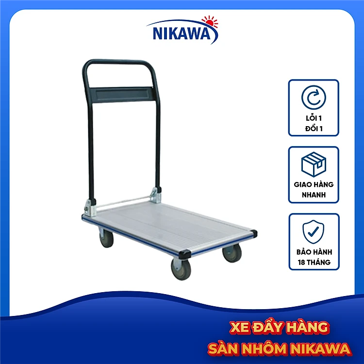 Xe đẩy hàng 4 bánh chống ồn Nikawa FWS-180 sàn nhôm tay cầm thép gấp mở tiện lợi tải trọng 180kg