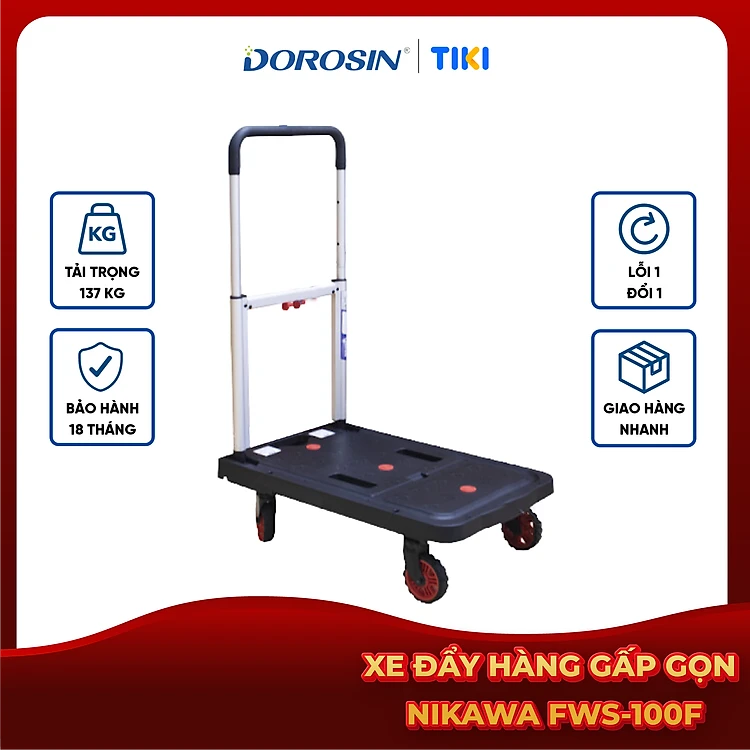 Xe Đẩy Hàng 4 Bánh Sàn Nhựa Không Võng Gấp Gọn Nikawa WFA-150DX Chống Ồn, tải trọng 150kg