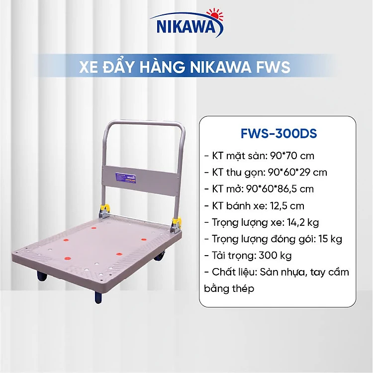 Xe Đẩy Hàng Nikawa FWS-150DS/300DS tải trọng 150-300kg sàn nhựa bánh xe cao su cao cấp. bảo hành 18 tháng - Xám