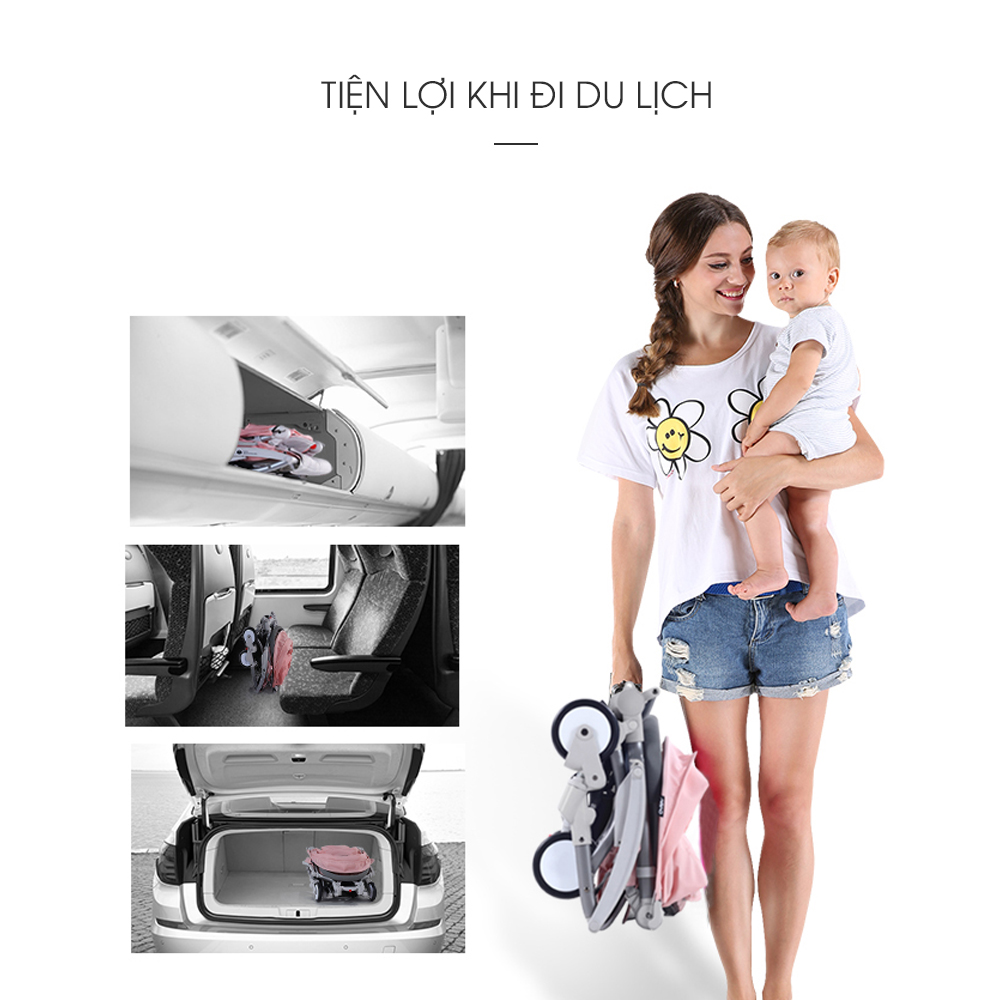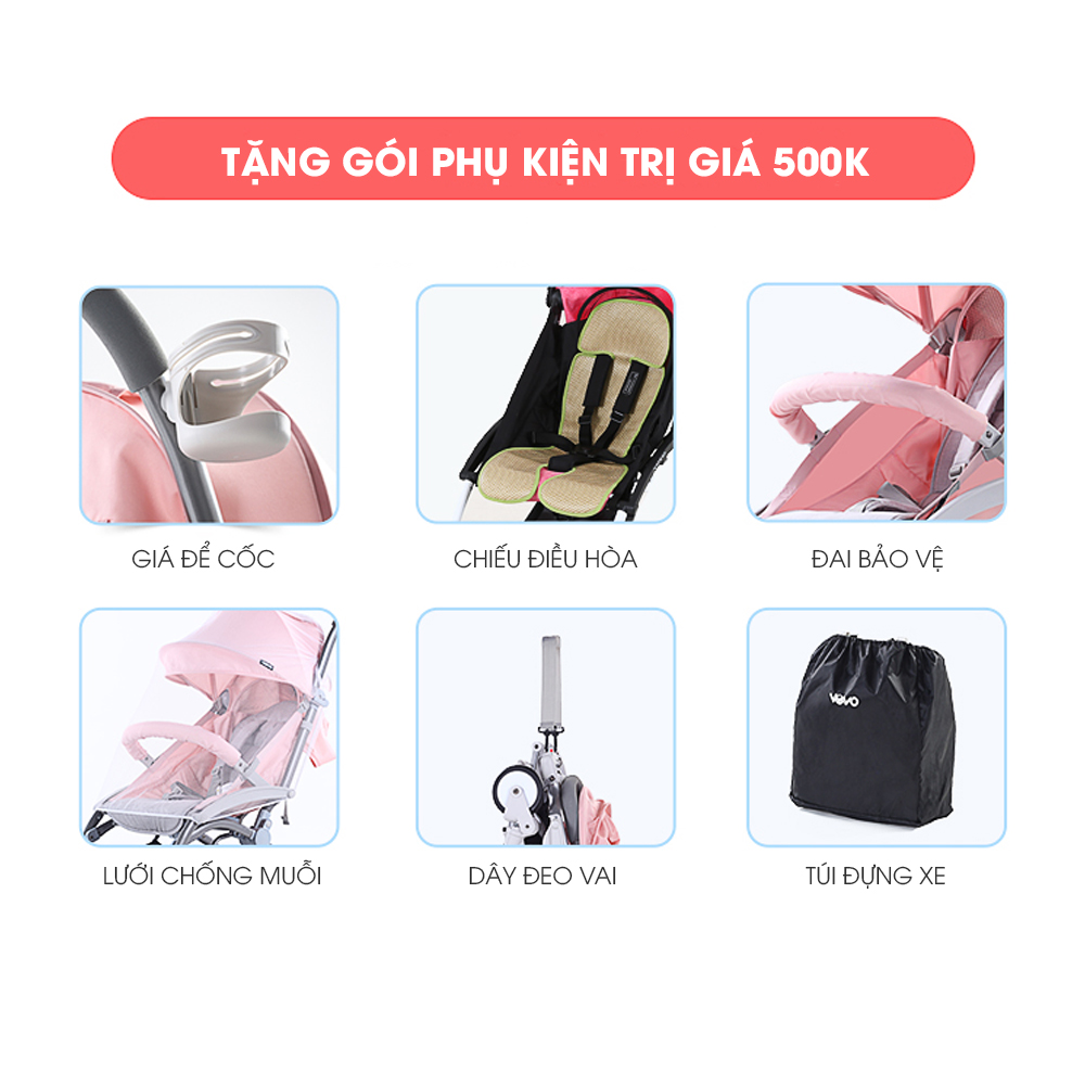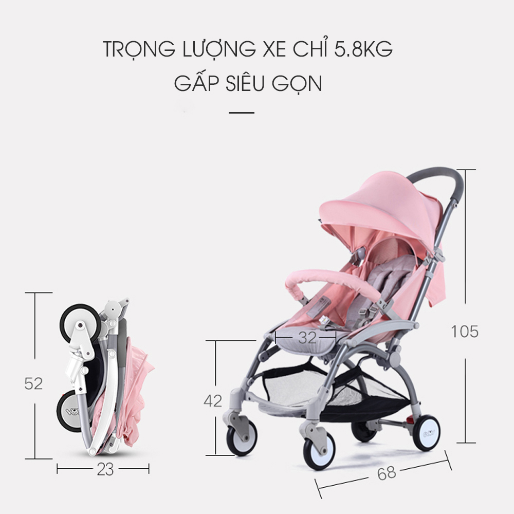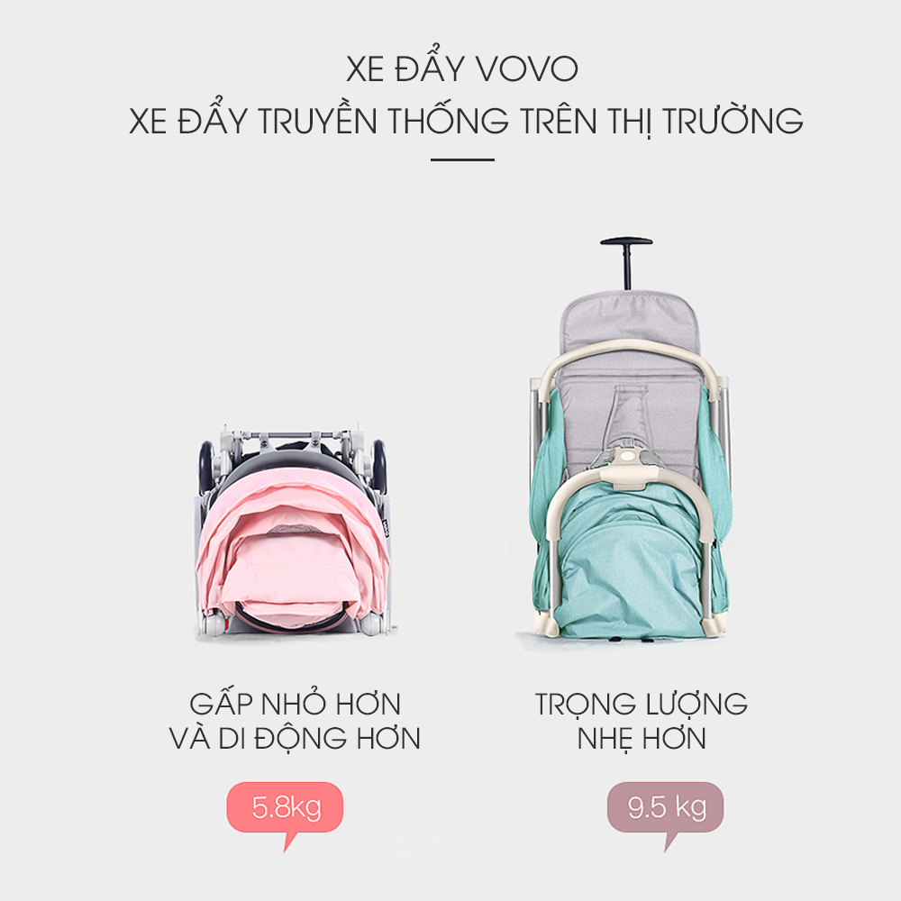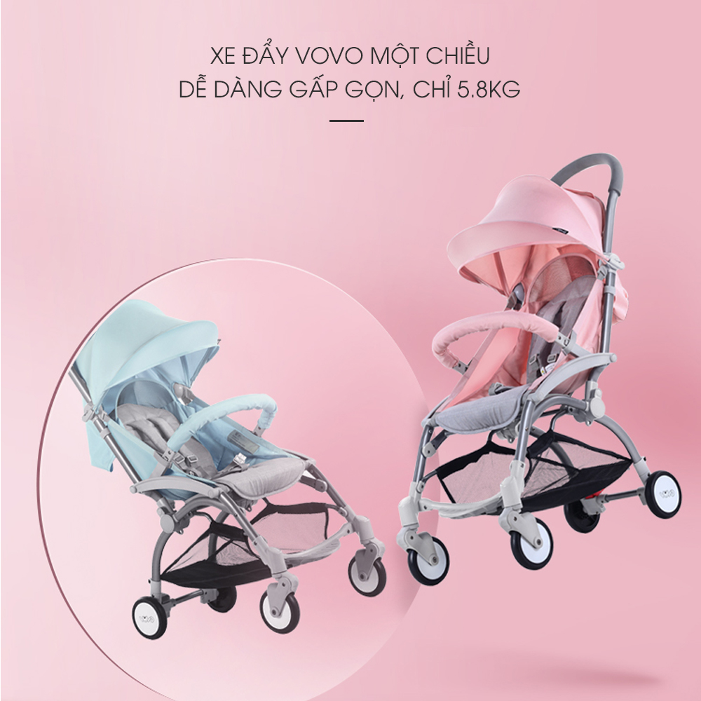 Xe đẩy Vovo 1 chiều 3 tư thế, tải trọng 50kg, dễ dàng gấp gọn, trọng lượng chỉ 5.8 kg, gấp nhanh 1 tay chỉ với 1 nút bấm