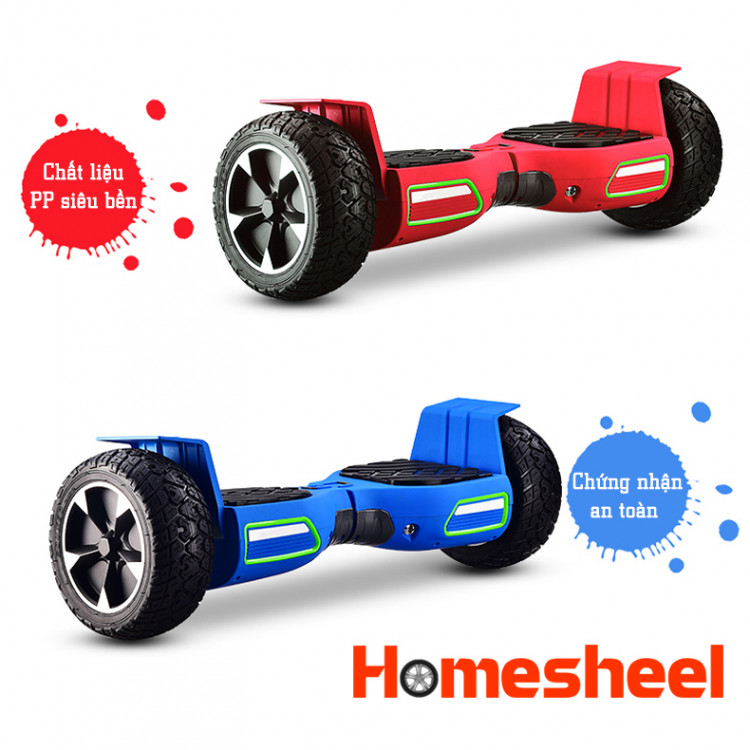 BÁNH TO CẢ CHIỀU NGANG LẪN CHIỀU DỌC: Để có thể đi trên nhiều đoạn đường khác nhau, Hãng HOMESHEEL đã thiết kế dòng bánh mới không những to cả chiều ngang mà còn cả chiều dọc. bạn sẽ thật sự ấn tượng với dòng sản phẩm xe điện cân bằng này.