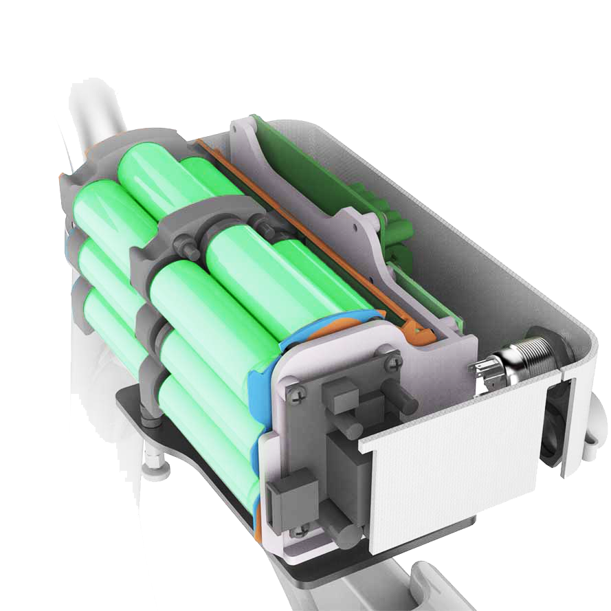 Airwheel E3 được kết hợp với bộ pin Li-ion cấp ô tô, nhẹ nhàng và tinh tế, là sự kết hợp khéo léo giữa tiện ích và vẻ đẹp.