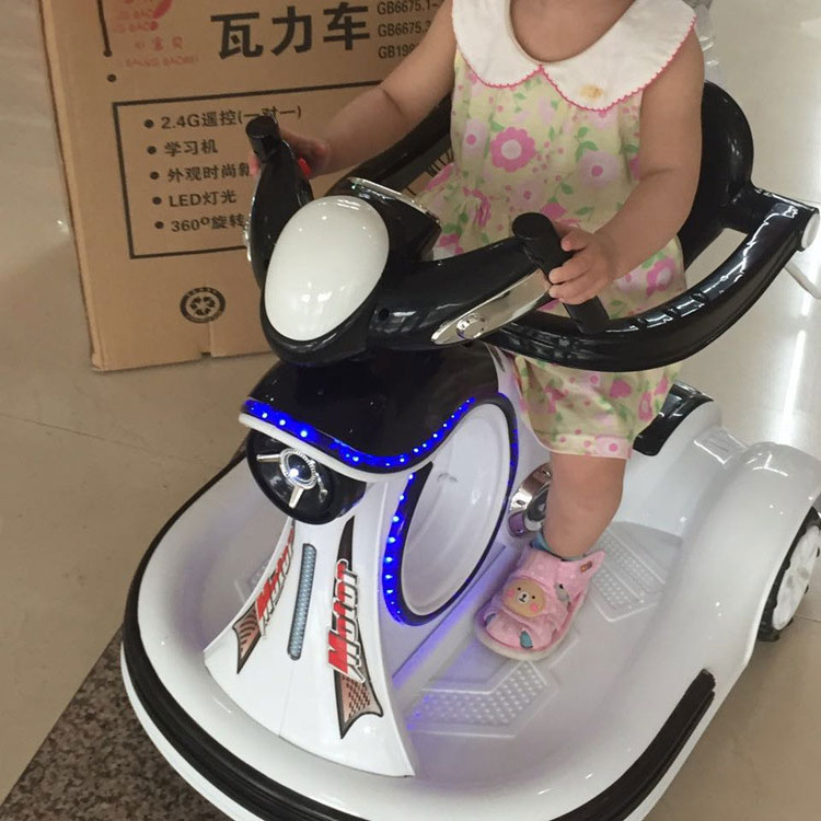 Chắc chắn khi nhìn chiếc xe cùng hệ thống đèn LED bắt mắt toàn bộ máy, bạn sẽ phải công nhận xe giống như một chiếc phi thuyền thu nhỏ, cực đẹp mắt mà độc đáo. Xe có 1 vòng tròn rỗng nhỏ phía trước được trang bị 1 dải đèn LED nhấp nháy, đồng thời khắp phần đẻ chân phía sau cũng được trang bị dải đèn LED phát sáng mỗi khi trẻ bật nhạc, đảm bảo trẻ sẽ thích mê khi ngồi xe.