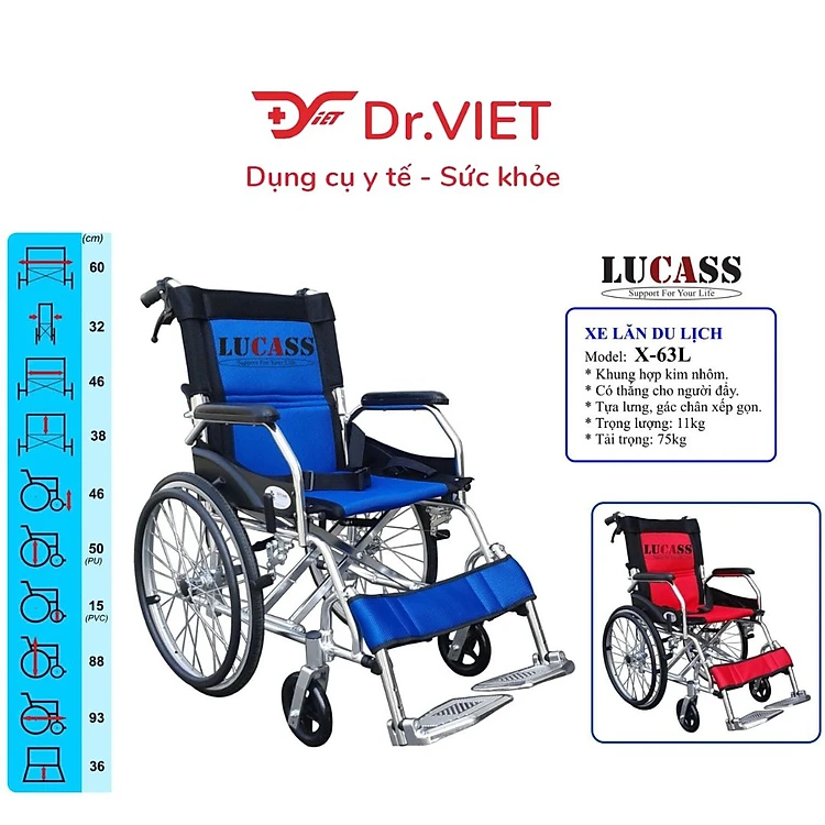 Xe lăn hợp tay siêu nhẹ Lucass X-63L
