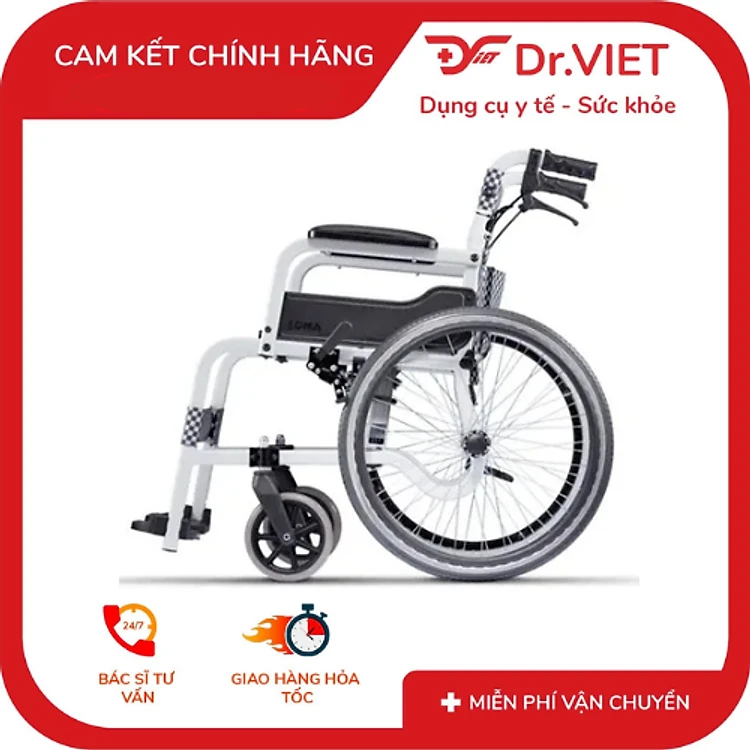 Xe lăn Karma Soma 105 – Phiên bản bánh lớn 16” & 18” – Trắng caro