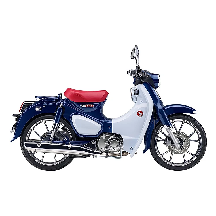 Xe máy Honda Super Cup C125 - Xanh Lam tạo điểm nhấn với nhiều chi tiết kế từ dòng Cub huyền thoại như đèn pha tròn, yếm hình chữ S, yên xe nhỏ, lốc máy, cần gạt số cổ điển. Thiết kế hình chữ S tạo ấn tượng hài hòa mềm mại cho tổng thể xe, phối màu thanh lịch cùng các chi tiết tinh tế trong từng đường nét và chất liệu crôm mang đến cảm giác cao cấp về chất lượng. Nhìn từ đằng trước, có thể thấy rõ chất cổ điển của xe. Đèn pha tròn to trông nổi bật. Tuy nhiên, xe được nâng cấp lên bóng đèn LED. Xi nhan được đặt gọn gàng bên 2 tay lái.