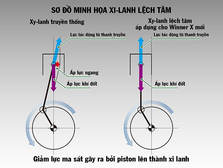 Động cơ PGM-FI kết hợp cùng công nghệ giảm thiểu ma-sát như xi lanh lệch tâm, váy piston được chế tạo với các đường vân thô và phủ lớp molybdenum, cò mổ con lăn và ống lót xi lanh với kết cấu giảm ma sát giúp WINNER X có công suất vượt trội và tiết kiệm nhiên liệu tối ưu.