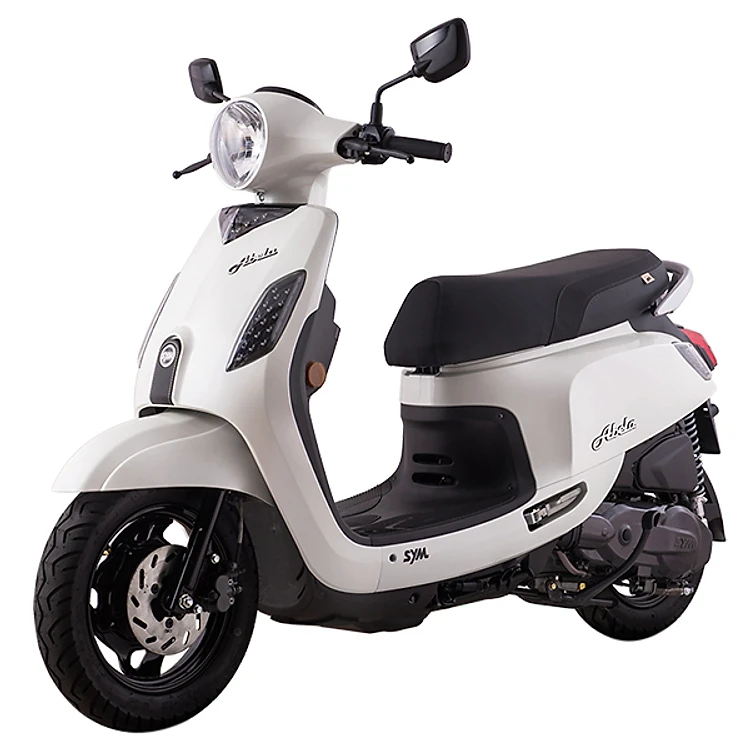 Xe Máy SYM Abela 110 - Trắng thế hệ mới có kích thước (dài, rộng, cao) lần lượt là 1.735 x 650 x 1.105 mm; chiều dài cơ sở 1.242 mm. Phần đèn LED thiết hình chữ “V”, chìm bên trong khối nhựa mờ thay vì lộ trên bề mặt. Nhờ vậy, đầu xe trở nên sang trọng và nổi bật hơn. Đèn sau được lắp đặt theo họa tiết hình con bướm giúp tăng tính thẩm mỹ và nữ tính cho xe.