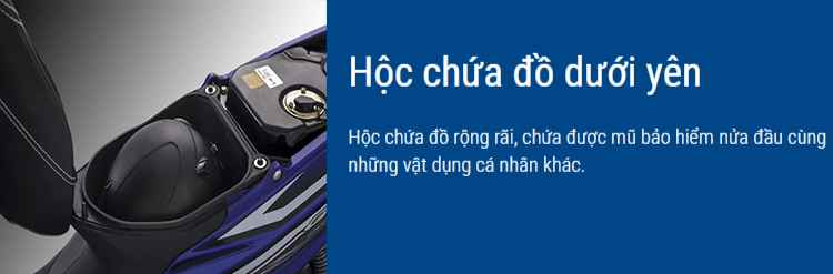 Hộc chứa đồ rộng rãi, chứa được mũ bảo hiểm nửa đầu cùng những vật dụng cá nhân khác.