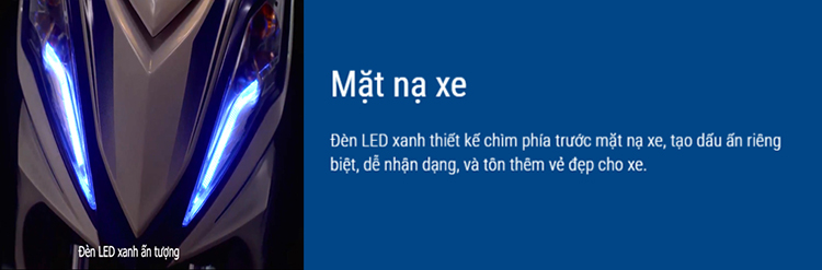 Đèn LED xanh thiết kế chìm phía trước mặt nạ xe, tạo dấu ấn riêng biệt, dễ nhận dạng, và tôn thêm vẻ đẹp cho xe.