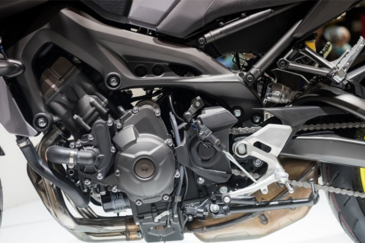 Về sức mạnh động cơ, Yamaha MT-09 vẫn được trang bị khối động cơ Crossplane 3 xylanh thẳng hàng, DOHC với dung tích 847 phân khối (hành trình Piston 78.0 x 59.1 mm) cùng tỉ số nén là 11.5 : 1, sản sinh công suất đầu ra là 113.5 mã lực tại vòng tua 10.000 vòng/phút vga mô-men xoắn cực đại là 87,5 Nm tại 8.500 vòng/phút. Theo Yamaha cho biết khối động cơ của MT-09 đã đáp ứng đủ tiêu chuẩn về khí thải Euro4. Mức tiêu hao nhiên liệu của xe vào khoảng 18,2 km/l. Xe được trang bị hộp số 6 cấp độ với hệ thống Quickshifter system (QSS) được trang bị mặc định, cùng với đó là hệ chống trượt bánh khi dồn số gắp Assist & Slip Clutch giúp côn nhẹ và vào số êm ái hơn.