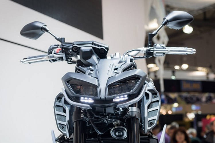 Yamaha MT-09 mới thiết kế đầu đèn đôi kiểu mới là điểm nâng cấp được nhiều anh em chơi xe phân khối lớn chú ý với đèn pha dạng đôi sử dụng công nghệ LED gương cầu 4 bóng và 2 dải LED Demi nhỏ phía dưới cùng hai ốp bè ra trông khá lạ mắt. Kết hợp với đèn xi-nhan MT-09 được di chuyển xuống vị trí khá thấp ngay cạnh két nước tản nhiệt có phần dễ nhìn và sắc cạnh hơn. Cụm đồng hồ hiển thị trên MT-09 có dạng điện tử đặt hơi lệch về phía tay lái phải. Tại đây có thêm nút bấm đèn cảnh báo, chuyển chế độ và tùy chỉnh 3 mức lực kéo là A – B – STD.