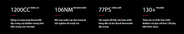Xe Môtô Triumph Bonneville Bobber mang tính biểu tượng, không ai khác đó chính là Bonneville Bobber. Với phong cách đặc biệt tối giản, Bonneville Bobber chứa đựng toàn bộ những gì một chiếc Bobber cổ điển cần có: đường viền liền mạch, dáng thấp, yên đơn, tay lái dẹt và rộng, thân xe phong cách tối giản, bánh sau lớn. Tất cả tạo nên một vẻ ngoài cứng cáp và hoang dã của Bonneville Bobber.