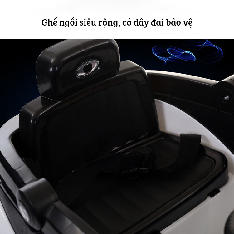 Xe ô tô điện cho bé có điều khiển từ xa kiểu dáng siêu xe mui trần được làm bằng chất liệu nhưa ABS an toàn tuyệt đối cho bé đồng thời thiết kế theo kiểu dáng ô tô mui trần nên hoàn toàn không sợ nghiêng đổ. Xe sử dụng động cơ điện 12V đảm bảo cho việc di chuyển dễ dàng, cùng với phần ghế ngồi lớn có dây đai bảo vệ an toàn đảm bảo trẻ không bị ngã. Thêm nữa xe có thể chịu được tải trong rất lớn lên tới 50kg ngay cả người lớn cũng có thể ngồi được, giúp an toàn cho 1-2 bé ngồi.
