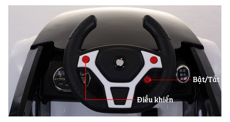 Xe có 2 chế độ điều khiển là sử dụng 2 nút ấn trên tay lái hoặc sử dụng điều khiển từ xa. Với những trẻ nhỏ chưa biết cách ấn nút trên tay lái để điều khiển thì các bậc phụ huynh có thể sử dụng điều khiển từ xa kèm theo để điều khiển xe chạy. Điểu khiển sử dụng xe cưc đơn giản, nút bên trái điều khiển xe rẽ trái, nút bên phải điều khiển xe rẽ phải và giữ 2 nút để xe chạy thẳng. Muốn chạy lùi thi chuyển chế độ chạy sang đi lùi thông qua 1 nút bấm ở bảng điều chỉnh rất đơn giản và thuận tiện.