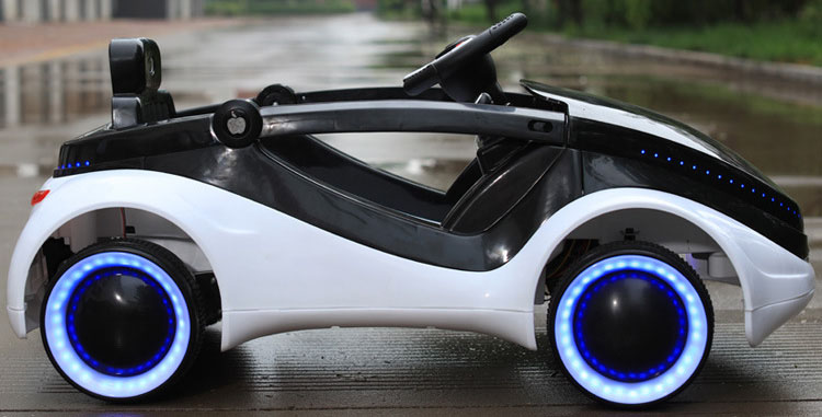 Chắc chắn khi nhìn chiếc xe cùng hệ thống đèn LED bắt mắt toàn bộ máy, bạn sẽ phải công nhận xe giống như một chiếc siêu xe mui trần cực đẹp mắt. Vòng tròn nhỏ ở bánh xe của Xe ô tô điện cho bé được trang bị 1 dải đèn LED nhấp nháy, đồng thời khắp phần mui xe cũng được trang bị dải đèn LED phát sáng mỗi khi khởi động xe, đảm bảo trẻ sẽ thích mê khi ngồi xe.