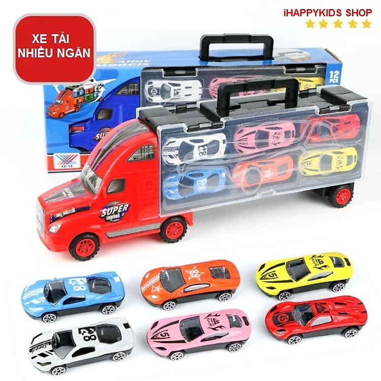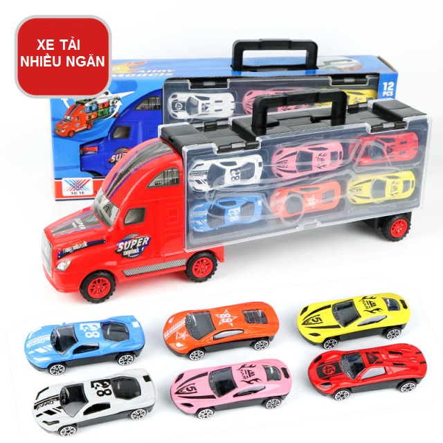 Xe tải nhiều ngăn chủ đề racing bao gồm 6 xe ô tô đua và các chi tiết trang trí giao thông.