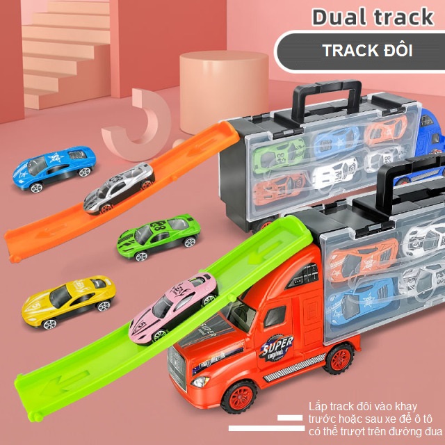 Bé còn có thể thả các xe con vào đường phóng được tích hợp trên đầu xe tải lớn để tăng cường tốc độ cho các xe con nữa đó.