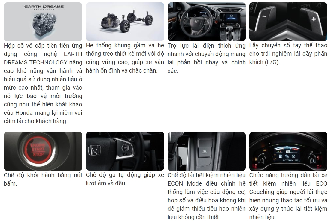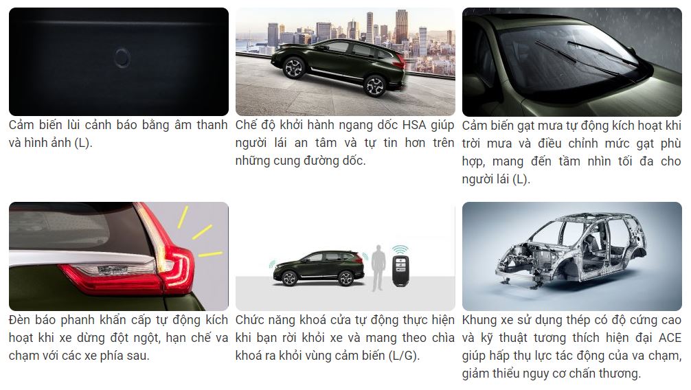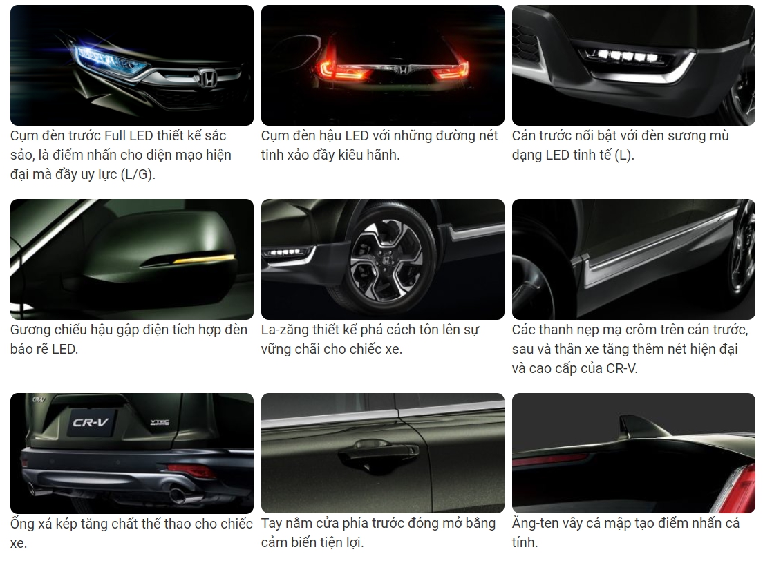 | Danh mục | CR-V 1.5 E | CR-V 1.5 G | CR-V 1.5 L |
