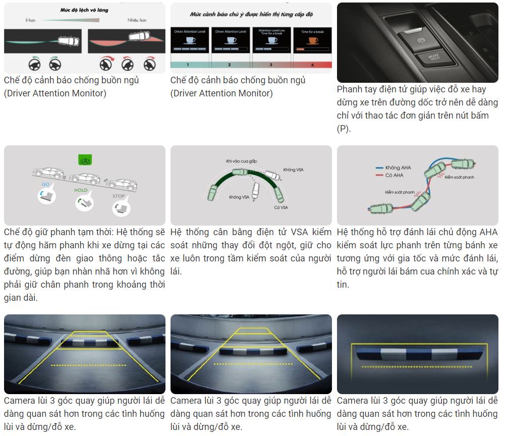 | Hệ thống cảnh báo chống buồn ngủ(Driver Attention Monitor) | Không | Có | Có |