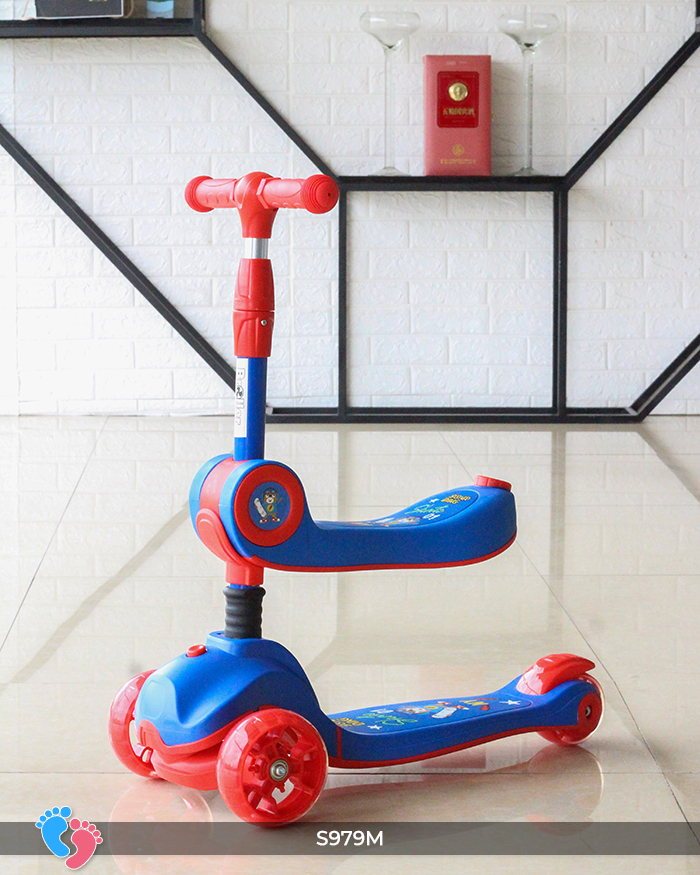 + Phần ghế nồi được thiết kế êm ái và có thể xếp lại để tạo thành xe trượt Scooter.