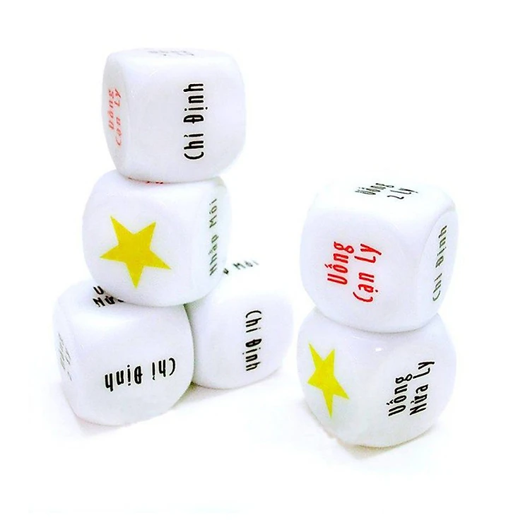 Khối lập phương sáng bóng, mỗi mặt đều in chữ rõ ràng, bạn lắc trúng mặt nào chính là "thử thách" dành cho bạn. Cùng tham gia trò chơi Xí Ngầu Uống Bia vô cùng thú vị bạn sẽ có những cuộc say không bao giờ chóng tàn.