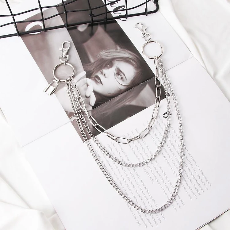 Xích đeo quần 3 tầng mix khoá ổ titan thép phong cách đường phố hip hop
