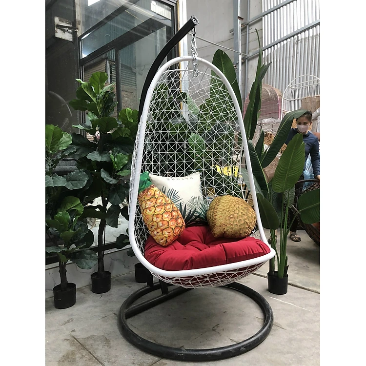 Xích đu đan lưới dáng móc câu XDdN3 chất liệu khung sắt mây nhựa cao cấp juno sofa