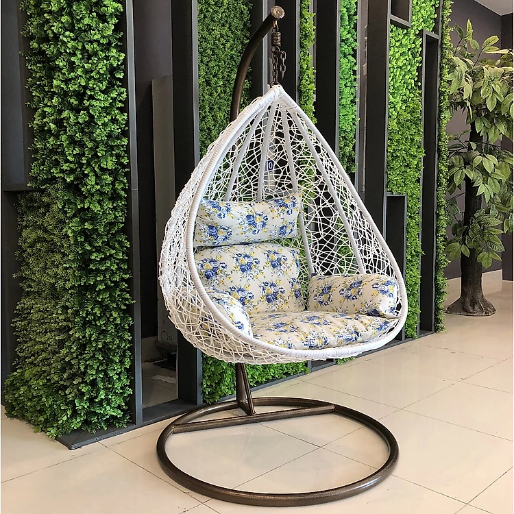 - Chất liệu: Xích đu được làm từ khung sắt sơn tĩnh điện, nhựa PE giả mây độ bền cao chống chịu được mọi thời tiết khắc nhiệt.
