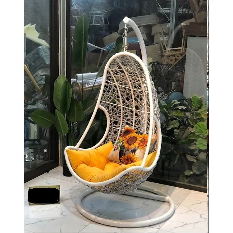 Xích đu đơn lưng tôm có tay sô vàng chất liệu khung sắt mây nhựa cao cấp juno sofa