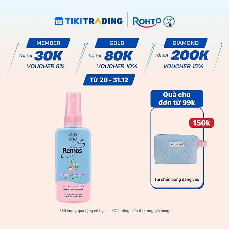 Xịt chống muỗi cho bé từ 6 tháng tuổi hương khuynh diệp Rohto Mentholatum Remos Baby Spray 70ml